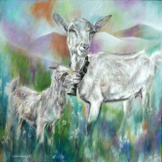 Ziegen in Scheffau (Bildmaße: 70 cm x 70 cm)