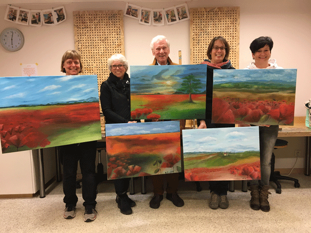 Folgende Workshops für Erwachsene sind in Planung: 1. In der freien Landschaft, dieselbe als Blickpunkt erfassen, auf Leinwand umsetzten und zum Gemälde fertig stellen 2. Portrait zeichnen 3. Portrait malen 4. Akt und Tanz (Grundlagen und Malerei) 5. Die Weicker-Technik