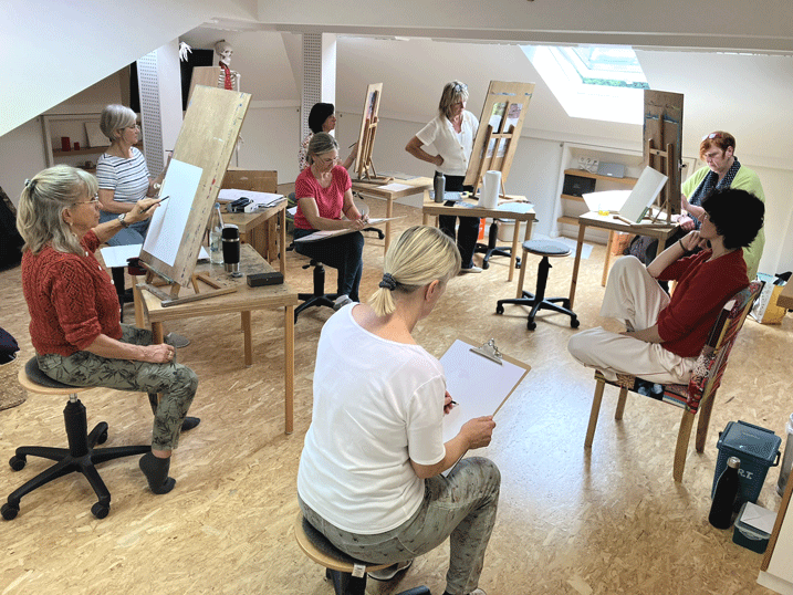 Workshops für Erwachsene finden immer Freitags oder Samstags in der Malschule oder im Kreativspeicher des Kunstateliers in Langsur/Metzdorf statt. Zeitfenster: 9.00 - 16.30 Uhr. Kosten: Ab 75 Euro (ohne Modell) Unter der Rubrik Termine sind die aktuellen sowie zukünftigen Veranstaltungen angekündigt.